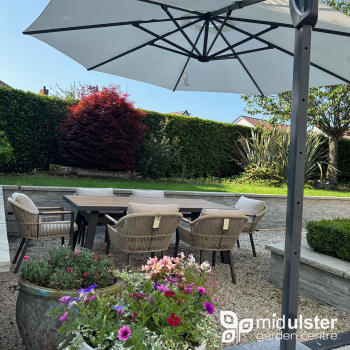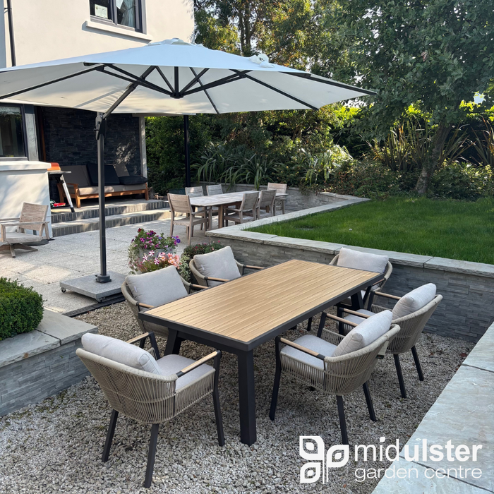 Perfect for both covered patios and open gardens, this versatile dining set brings resort-style luxury to your outdoor space. The neutral color palette complements any garden design, while the materials have been specially selected to withstand outdoor conditions while requiring minimal maintenance.