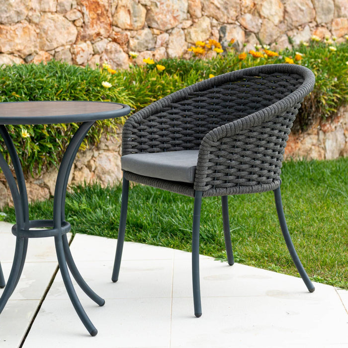 A stylish contemporary piece, the Alexander Rose Cordial Dining Chair (2 Colours) is cleverly crafted using aluminium frames and marine grade rope weave. This stunning piece is the perfect addition for your garden with it's elevated comfort and style.