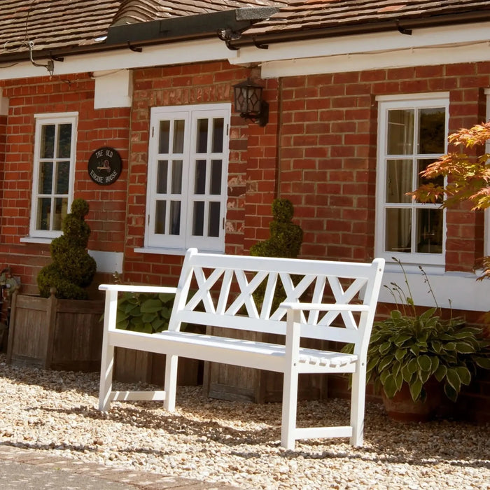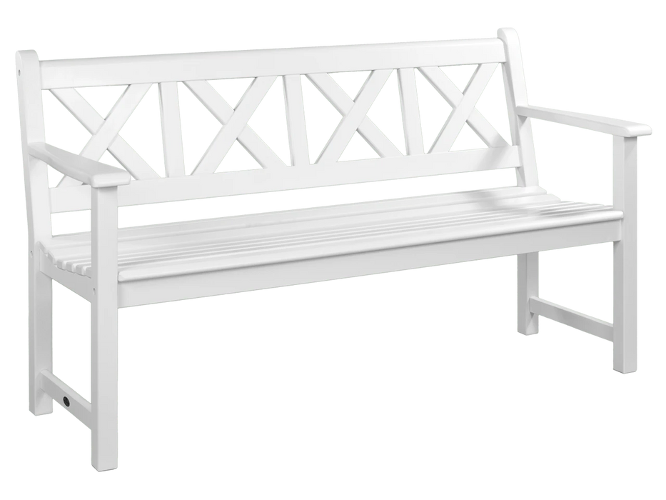 Our wonderful Drachmann bench is clean, sleek and modern in design. Unlike other benches in our Sherwood range, this one has a unique, perfectly symmetrical patterned back, which gives it a contemporary look. It’s finished in a beautiful white paint, which looks incredible when contrasted with luscious greenery and flowers. Made from Acacia timber, and comes with a three-year warranty.