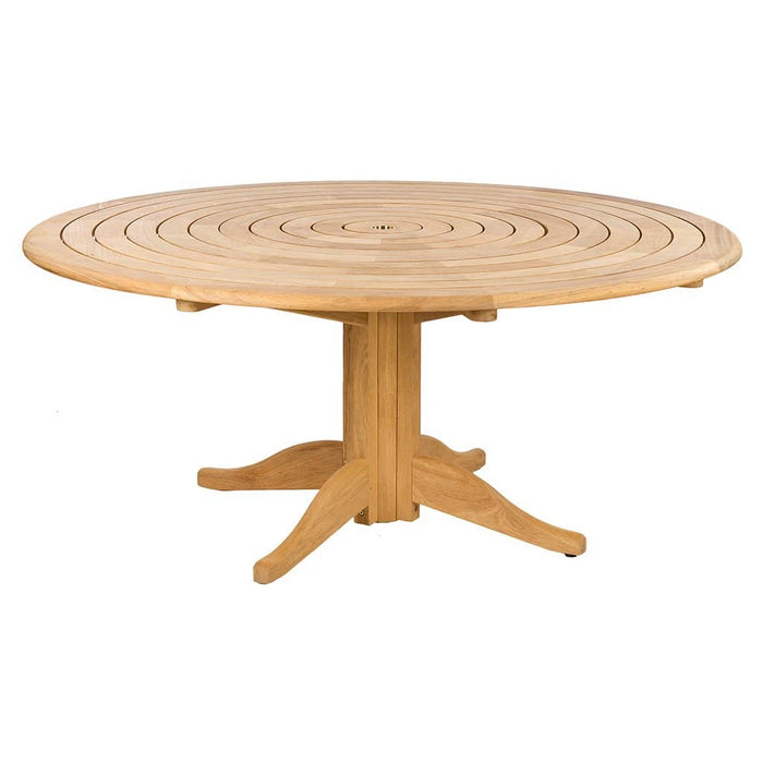 The Alexander Rose Bengal Roble Pedestal table is a beautifully crafted piece where art meets function. The planks are expertly shaped to create a series of smooth concentric circles. The pedestal base will support a parasol and allow plenty of legroom for your guests. Complete with an industry leading 10 year warranty.
