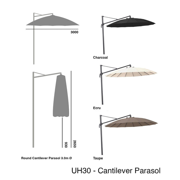 Alexander Rose Round Cantilever 3.0m Parasol UH30 - Charcoal, Ecru, Taupe