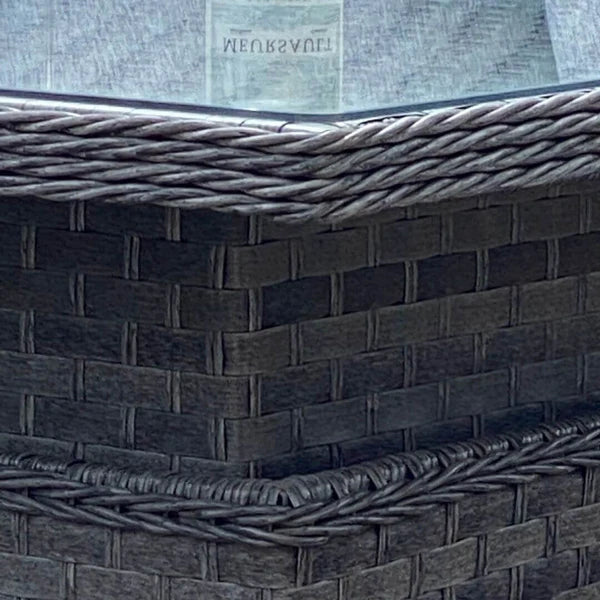 The distinctive design features a broad weave beautifully complemented by round rattan detailing on the trims, creating a sophisticated yet relaxed aesthetic. Built to last, each piece is crafted with a quality tubular aluminum frame with powder-coated finish and UV-stable, weatherproof synthetic rattan—ensuring your furniture looks stunning season after season.