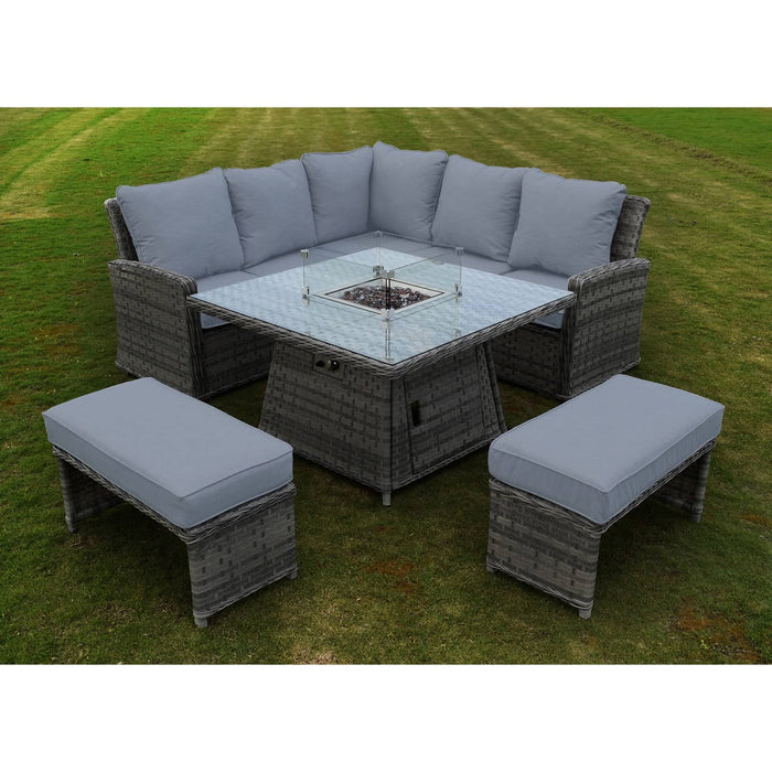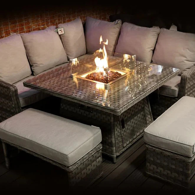 Experience luxury outdoor living with the Amalfi Casual Dining Set featuring an integrated firepit centrepiece. This premium set combines style, comfort, and functionality with: