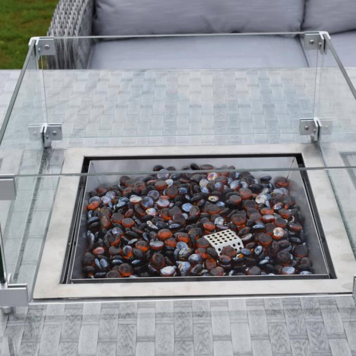 - Built-in glass-protected firepit for ambient lighting and warmth