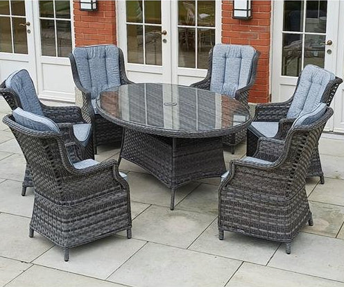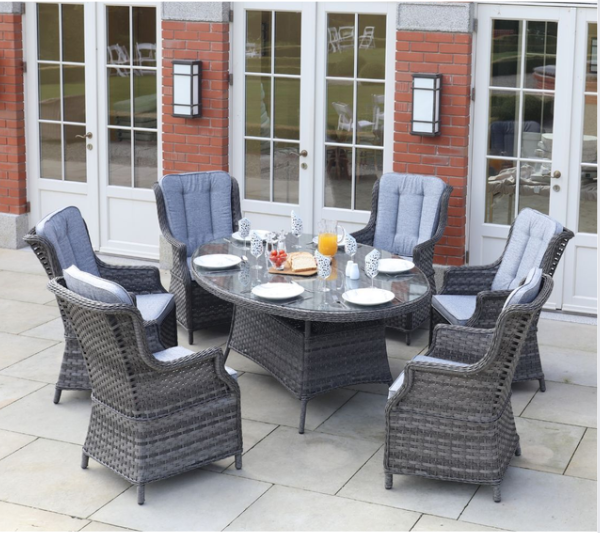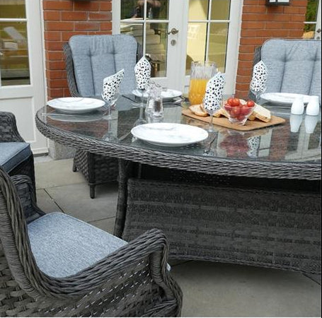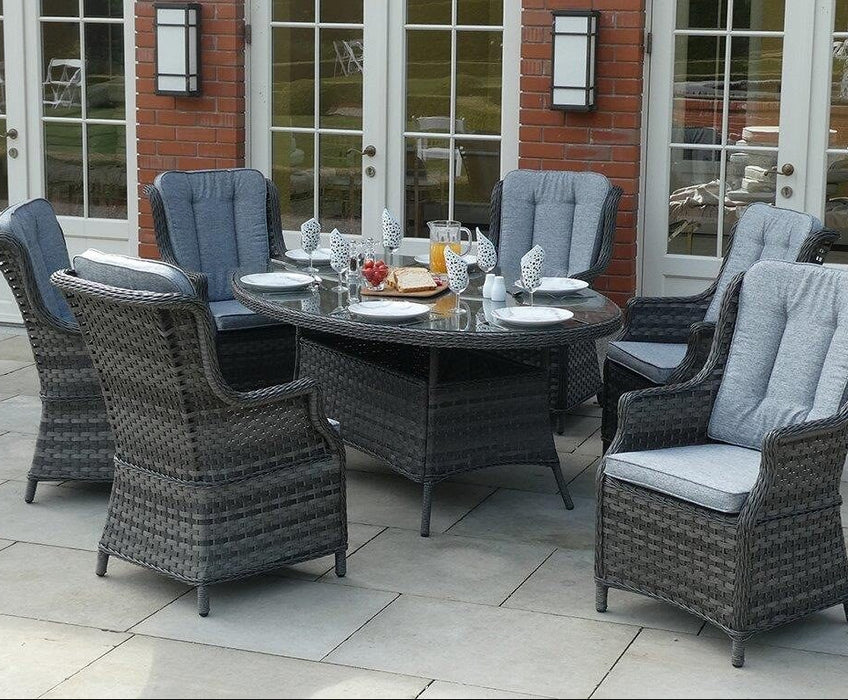 Amalfi High Back 6 Seat Oval Dining Set in Grey