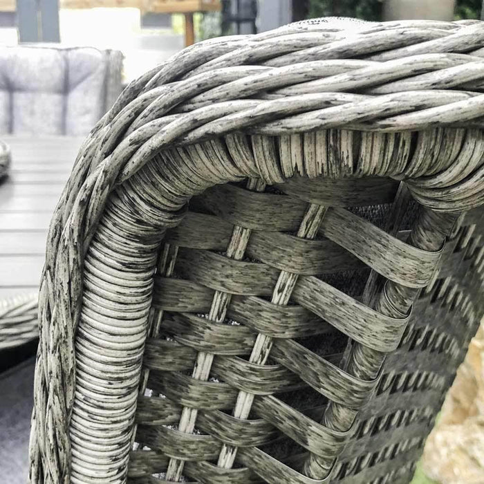 The distinctive design features a broad weave beautifully complemented by round rattan detailing on the trims, creating a sophisticated yet relaxed aesthetic. Built to last, each piece is crafted with a quality tubular aluminum frame with powder-coated finish and UV-stable, weatherproof synthetic rattan—ensuring your furniture looks stunning season after season.