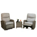 Indulge in a summer of relaxation with Amalfi Relaxer Bistro Set, part of Mercer's garden furniture reclining collection. Experience ultimate comfort with two cozy sofa chairs, perfect for enjoying quality time and refreshments. The classic two-tone grey weave has been a top choice among customers for years. The tempered glass tabletop guarantees protection from spills and long-lasting durability.