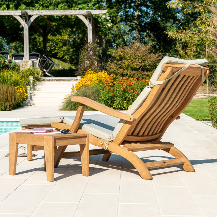 Introducing the Alexander Rose Bengal Roble Steamer Chair with Tivoli Side Table, is a quality piece of garden furniture that is sure to add a touch of luxury to your outdoor space. This beautiful steamer chair complete with handy side table has been crafted from top quality materials, and features a stylish design that is perfect for any patio or deck. The chair folds away easily for storage. Whether you're looking to relax in style or entertain guests in your garden, the Alexander Rose Bengal Roble Steamer Chair is the perfect choice. Order yours today and enjoy true outdoor luxury.