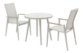 This three-piece set includes two comfortable armchairs and a coordinating round bistro table, creating an intimate dining or relaxation spot for two. Whether you're enjoying your morning coffee, alfresco dining, or evening drinks, this set provides the perfect setting.