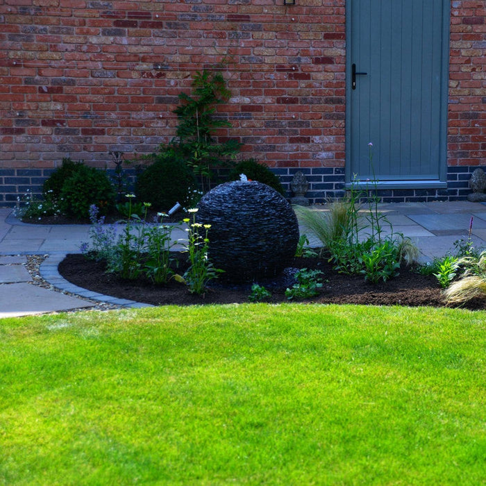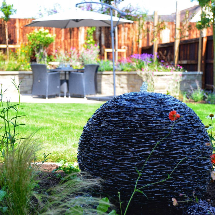 Add a bold statement to your outdoor space with this 40cm slate sphere. The gentle sound of water trickling over this architectural sphere will add an ambiance of tranquility to your garden,