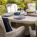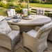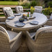 Hosting your family and friends with the Eton 8 Seat Elliptical Dining Set will be an impressive social affair. The grand oval table comes complete with a lazy Susan. Crafted from resin weave, hand woven over a light but strong aluminium frame and finished with our scratch resistant Tuscan ceramic glass tabletop. 8 generous sized dining chairs provide extra comfort and support with their high backs and arm rests; and come with our permeable Weatherready® cushions. The cushions can be left outside during summer months, whilst the table and chairs can live outside all year round. This set comes with a 3m Round Luxe Parasol, 15kg base and coordinates beautifully with other dining and lounging options in the full Eton collection.