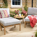 The Sahara 2-Seat Lounge Set combines timeless Scandinavian design with modern comfort, perfect for both indoor and outdoor living spaces. Crafted with a smooth, Folie - wood-look foiled aluminium frame in Larch, it features soft rounded edges and natural tones to bring a warmth and elegance to any setting. The set includes a two-seater sofa, two single lounge chairs, and a matching coffee table, creating a cohesive and inviting look.