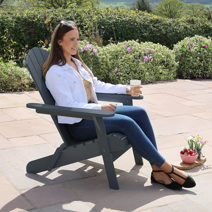 Our stylish painted Jasmine Folding Chair is available in both light grey & dark grey. They have a comfortable & elegant design inspired by the simple contours of the popular Adirondack style from New England. Made from rich, durable and sustainable acacia wood, which is naturally water resistant and has natural durability. To further enhance its durability, it is painted with polyurethane, which is much tougher than traditional paint and is more resistant to knocks and scrapes. Polyurethane is also resistant to water and most chemicals.