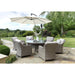 Ultra-soft cushioning is included on all seating and is UV, stain, shower and fire resistant. Weather-proof and UV resistant wicker is handwoven around rustproof aluminium frame for low maintenance and strength.