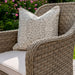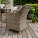 • Powder coated aluminium frame with a mix of flat and half round wicker weave. Full round wicker is used on the armrests and edges.