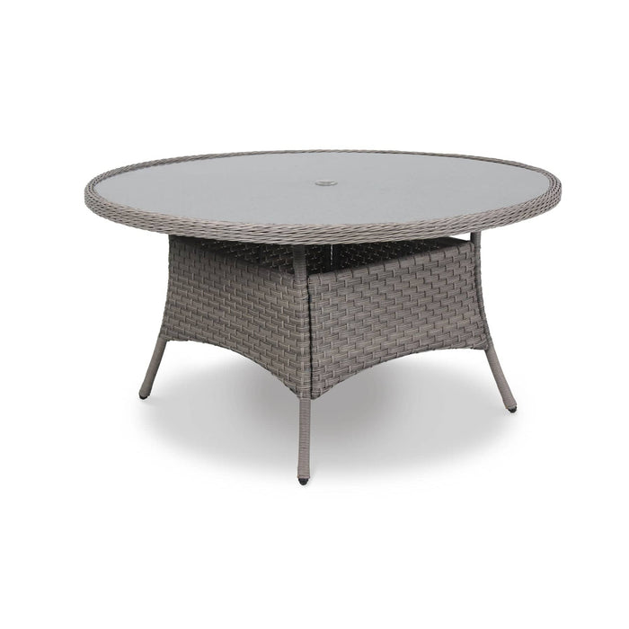1x Charlbury 120cm Round Glass Top Table with parasol hole (0195534-6009)