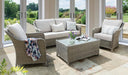Ultra-soft cushioning is included on all seating and is UV, stain, shower and fire resistant. Weather-proof and UV resistant wicker is handwoven around rustproof aluminium frame for low maintenance and strength.