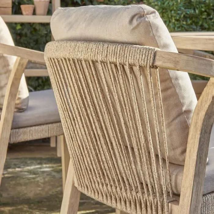 The Cora collection beautifully combines Acacia hardwood in a smoke white finish with rope detailing in a natural colourway, offering an elegant and organic quality that would suit any garden or conservatory. Featuring soft, sumptuous cushions delivering comfort and relaxation, the Cora range will be sure to impress.