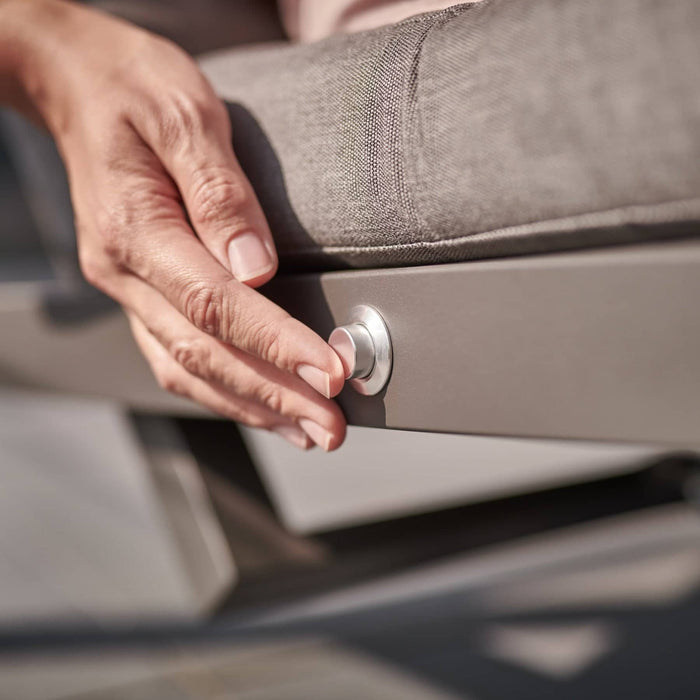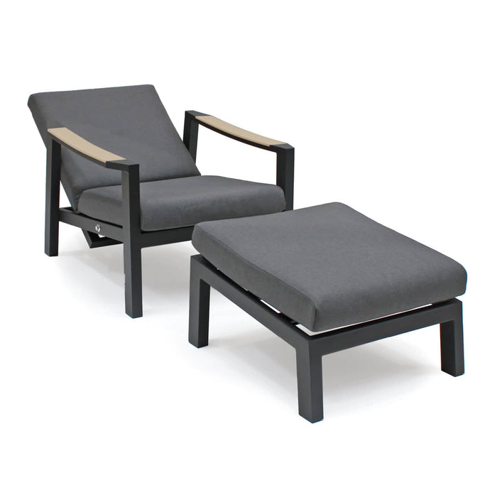 The Kettler Elba Relaxer With Footstool is a contemporary style garden recliner for modern gardens and conservatories. The Elba relaxer blends aluminium and wood for a modern take on traditional garden furniture styles. Serve drinks on an optional side table. The thick, foam core cushions sit on textile sling for maximum comfort on your corner garden furniture set.