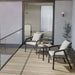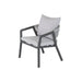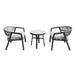 Made from an aluminium frame, chairs have PVC rope weave and the table has a grey finish glass top.