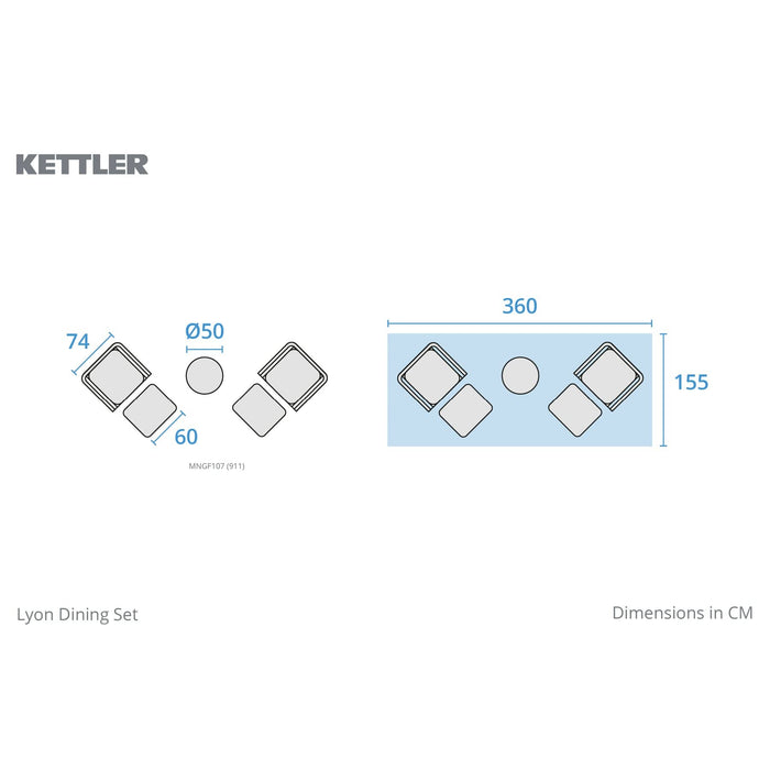 The Kettler Menos Lyon Duo Set is the perfect way to relax and enjoy the outdoors. The set includes two comfortable lounge chairs, two footstools, a side table, and cushions for added comfort. The strong and durable galvanized steel frame is powder-coated to resist rusting, while the PVC cord weave is both tough and waterproof, making it ideal for use outdoors. With its stylish good looks and superior comfort, the Kettler Menos Lyon Duo Set is sure to become your favourite spot for kicking back and enjoying the outdoors.