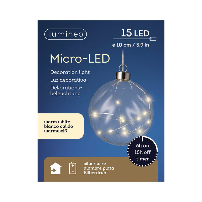 Micro LED Ball Diameter 10cm Clear, Warm White 15 Lights